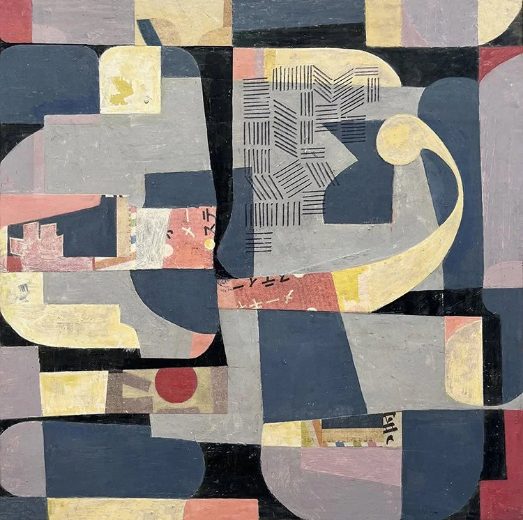 My process is one of experimentation and discovery, navigating the tension between risk-taking, chance, and intuition. Using acrylic, ink, and collage elements, I hope that my abstract, layered compositions will engage people’s imagination and hint at mysteries to be revealed over time.